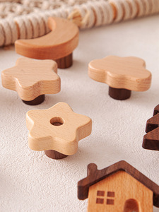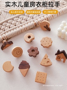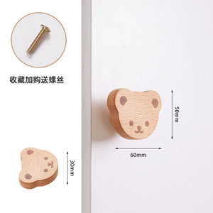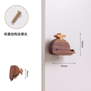 儿童柜门把手衣柜拉手实质木简约卡通猫爪恐龙鲸鱼橱柜子抽屉拉手