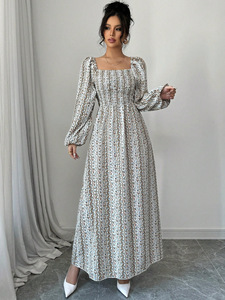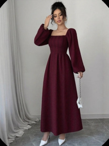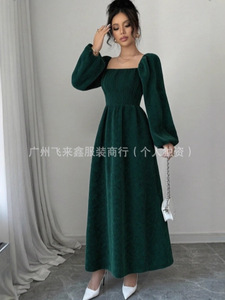 跨境连衣裙2025秋季欧美女款时尚优雅最新方领