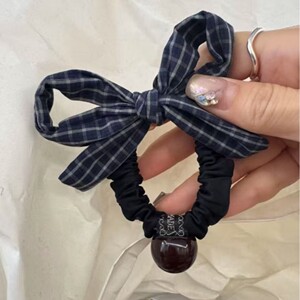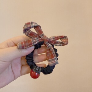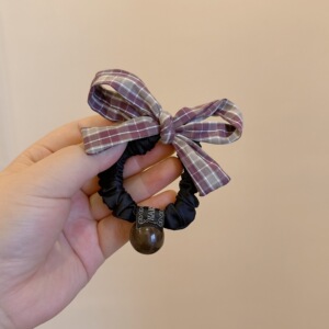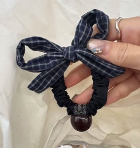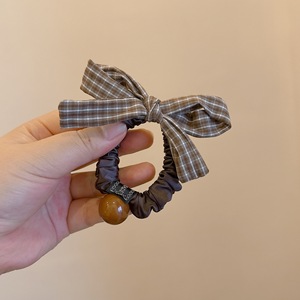 韩国发饰格纹蝴蝶结小众发圈温柔百搭复古发绳高弹力珍珠皮筋皮套