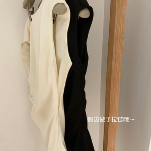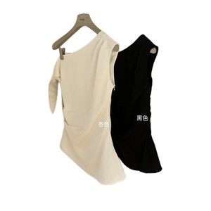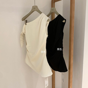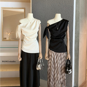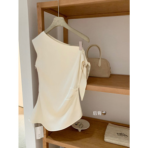 WGWE6682气质高级感不规则斜肩绑带设计针织无袖T恤