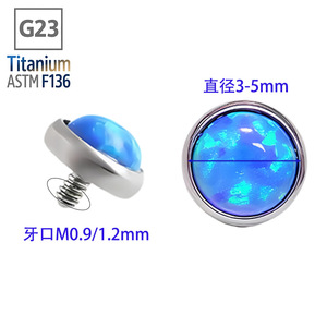 F136钛合金包镶平底澳宝外螺纹欧珀唇钉耳骨钉G23人体穿刺饰品头