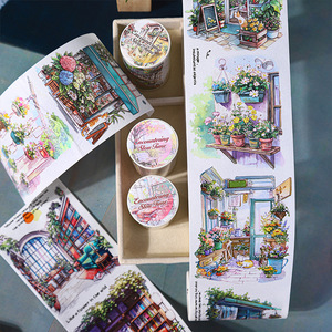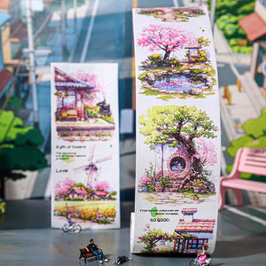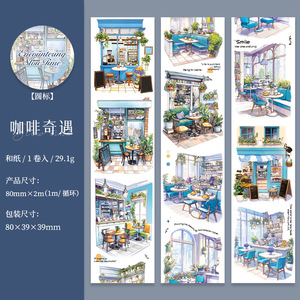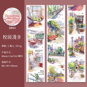 邂逅慢时光城市造景胶带 大尺寸校园街景咖啡店手账拼贴背景素材