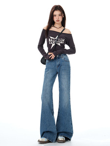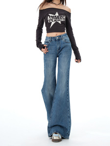 复古低腰不贴腿微喇牛仔裤女2025秋冬新款弹力显瘦宽松拖地喇叭裤