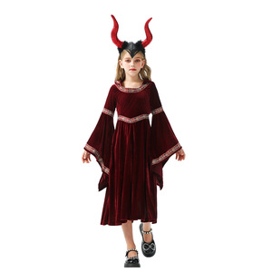 万圣节儿童服装复古宫廷童装女巫小红帽中世纪文艺复兴女童连衣裙