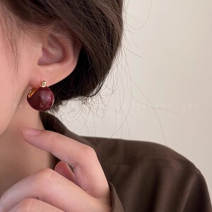 日常百搭通勤圆球滴釉耳环女2025新款爆款高级感耳扣复古港风耳饰
