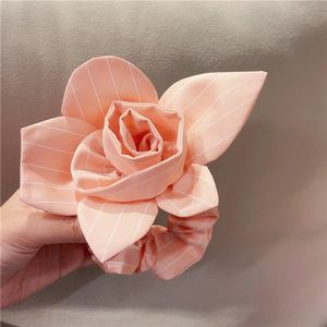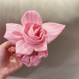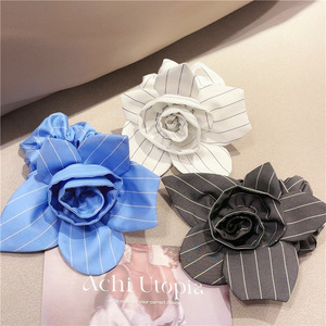 韩国东大门新款气质大号条纹花朵发圈头绳发饰头花扎马尾皮筋发绳