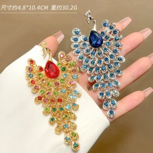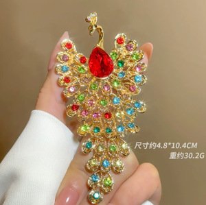跨境欧美防走光孔雀胸花别针高档brooch水钻服装配饰凤凰复古胸针