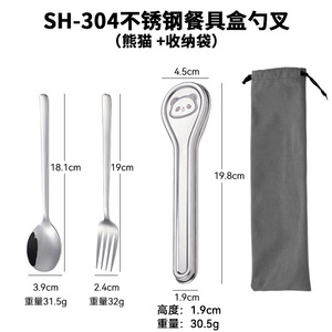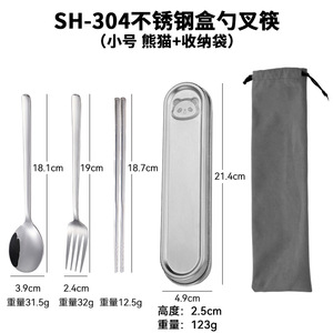 SH-304不锈钢盒勺叉筷(熊猫+收纳袋)