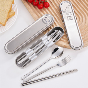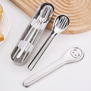 304不锈钢便携餐具户外便携勺叉筷三件套萌趣动物勺叉餐具收纳盒