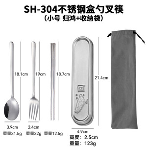 SH-304不锈钢盒勺叉筷(归鸿+收纳袋)