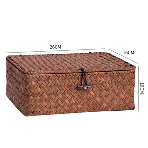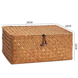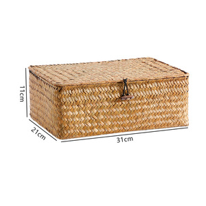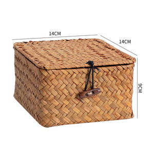 草编有盖收纳盒 桌面整理盒家居创意手工编织包装盒礼品盒非藤编