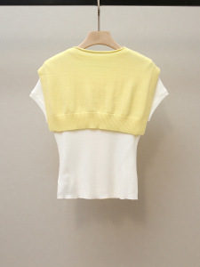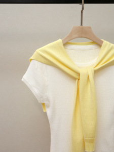 深圳南油高端女装秋季新款小众韩系减龄黄色披肩修身T恤针织衫女