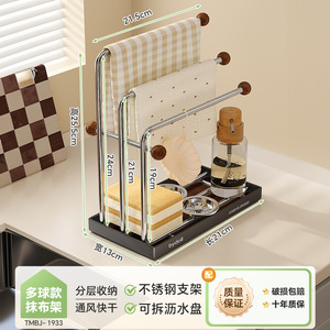 中古风不锈钢厨房抹布沥水架 台面水槽洗碗布海绵多功能收纳架子