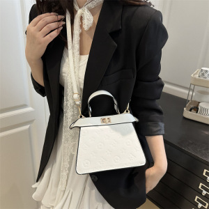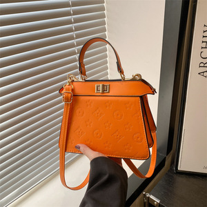 纯色压花隔层2025新款时尚质感锁扣大容量休闲手提单肩斜挎女包包