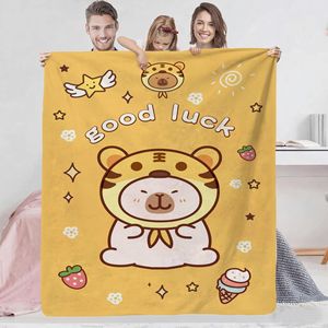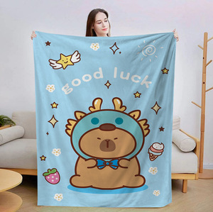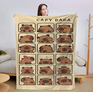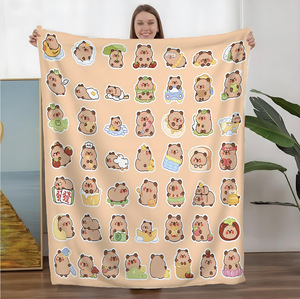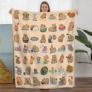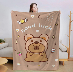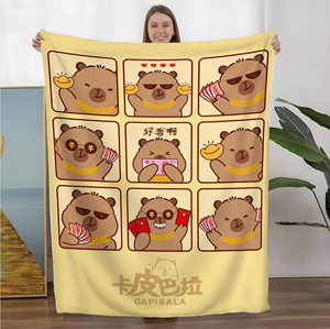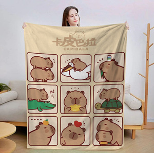 新款可爱卡皮巴拉冬季加厚小毯子 办公室午睡毯法兰绒毯 沙发盖毯