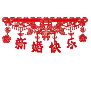 结婚门楣植绒婚房布置门楣拉花喜字套装中式喜庆帘婚庆用品装扮门