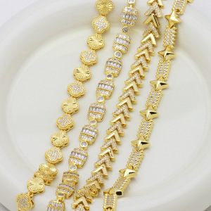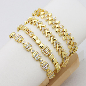 V字形桃心爱心月亮星星镶锆石保色18K金轻奢高级感手环手链手饰品