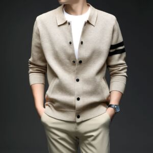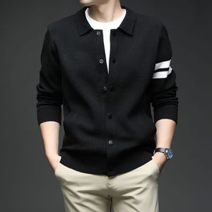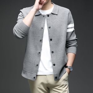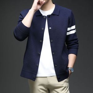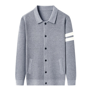 春秋季新款男士针织毛衣开衫中青年韩版休闲时尚长袖翻领修身外套