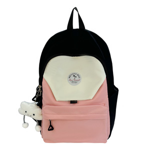 新款轻便ins日系双肩包简约休闲撞色初中高中大学生书包百搭背包