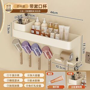 【右手通用】四人牙刷吹风机架+彩色杯♜