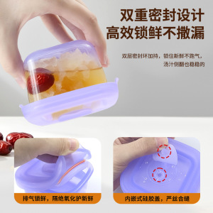 硅胶保鲜盒单个冷藏辅食盒蔬菜瓜果收纳盒方形带盖透明硅胶保鲜盒