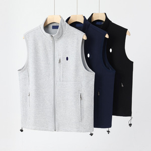 春秋款拉链开衫马甲男士大码宽松无袖棉质卫衣立领小马标男装外套