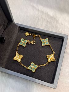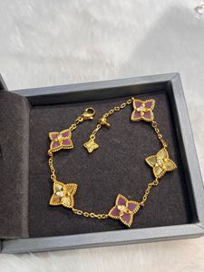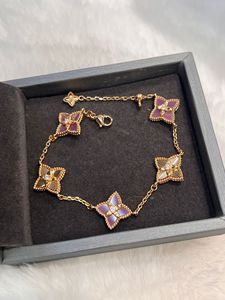 轻奢粉贝紫玉髓间镭射四叶草五花手链复古宫廷风甜美气质新款项链