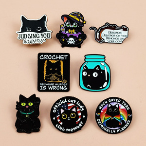 欧美暗黑系列猫咪合金胸针ins个性百搭英文字母服装背包徽章配饰