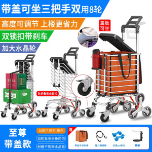 至尊款【带盖可坐】八轮三把手橙色 水晶爬楼轮带刹车+折叠两用