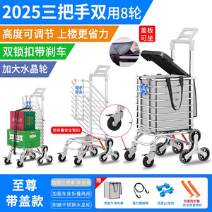 至尊款【带盖可坐】八轮三把手藏青 水晶爬楼轮带刹车+折叠两用