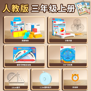 2025新版人教三年级数学教具分数测量套尺学生几何角认识数学教具