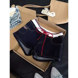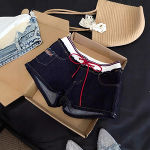夏季新款纯欲辣妹撞色腰头拼接牛仔超短裤女设计感短款ins风热裤