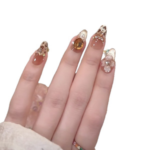 【落日豹纹】纯手工穿戴甲豹纹猫眼高品锆石高级显白纯手作美甲贴