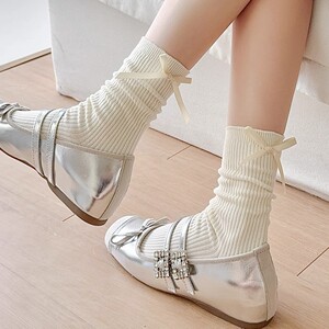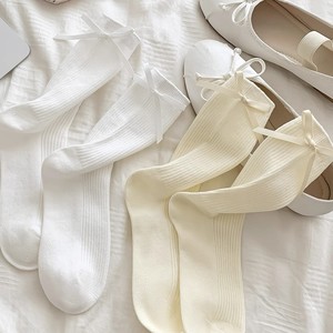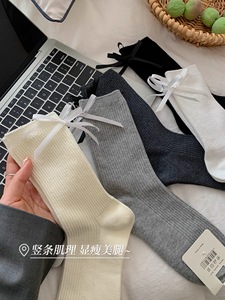 袜子女甜美立体后跟蝴蝶结长筒袜子秋季双针堆堆袜子