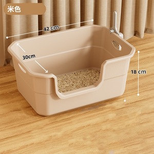 超大空间60cm丨加高围栏刨砂无忧【奶茶色】可手提式猫砂盆+砂铲