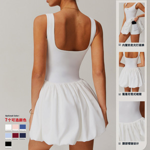 alo原版运动连衣裙假两件女防走光打底运动健身花苞下摆网球裙