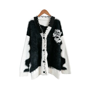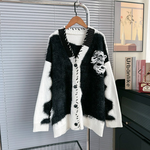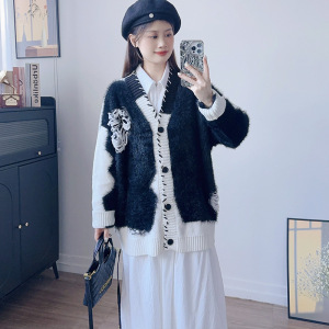 温柔软糯宽松慵懒风毛衣外套女秋冬季设计感小众撞色复古针织开衫
