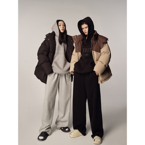 655#【特价!】周淼ZHOUMIAO拼接情侣羽绒服加厚宽松连帽短款外套