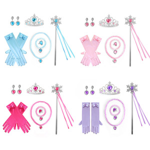 现货儿童皇冠头饰公主魔法棒爱莎公主项链雪花棒手套演出装扮配件