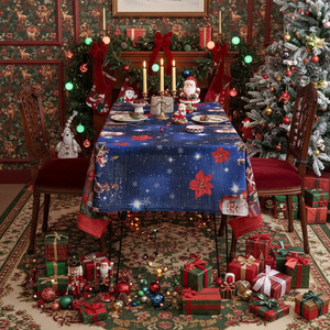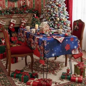 新款美式桌布圣诞主题餐桌布圣诞台布节日装饰成品桌布厂家批发