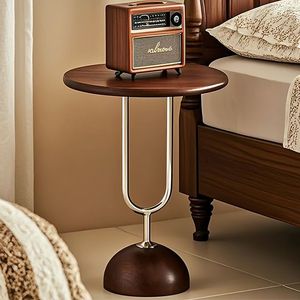 中古风环保E0级实木边几床头柜创意圆桌实木不锈钢搭配置物小茶几