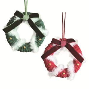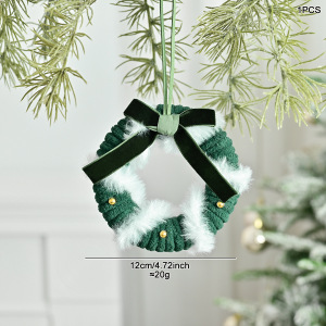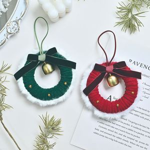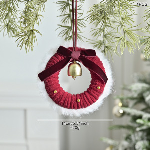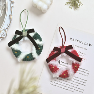 圣诞氛围毛绒线花环挂件丝绒蝴蝶结铃铛圣诞装饰花环迷你车挂门挂