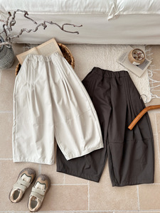 童裤2025秋季男童女童韩版纯色休闲萝卜裤儿童拼接宽松阔腿裤