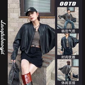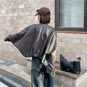 2025年秋季新款韩版时尚宽松休闲皮衣女百搭显瘦长袖皮上衣潮ins