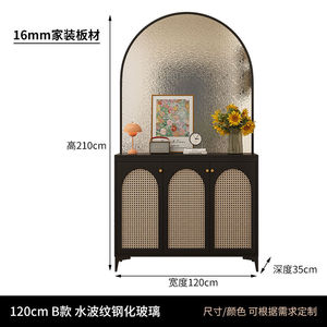入户玄关柜鞋柜客厅藤编隔断复古屏风轻奢正对门口玻璃隔断柜