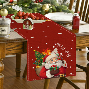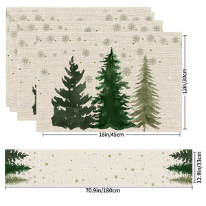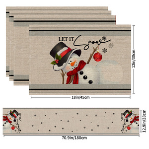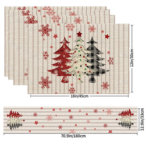 圣诞节餐垫桌旗组合系列亚麻印花圣诞派对餐厅装饰桌布餐具隔热垫