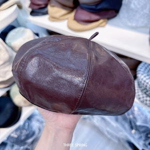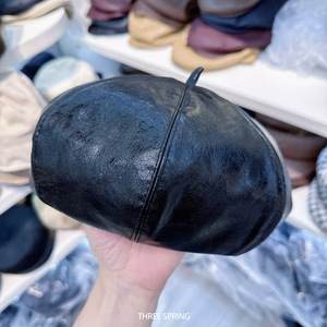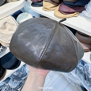 批发韩国2025年早秋新款高级感PU皮质贝雷帽女大头围显脸小南瓜帽