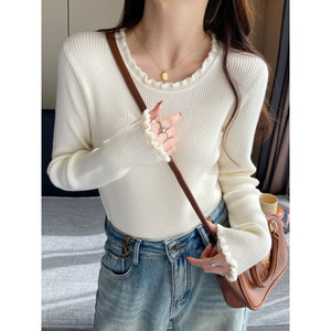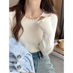 木耳边打底衫女2025新款秋冬洋气内搭针织小香风上衣开春圆领毛衣