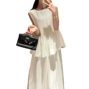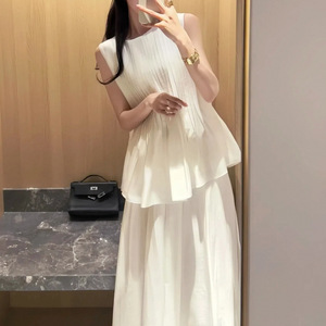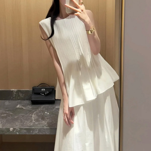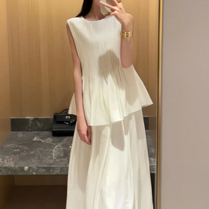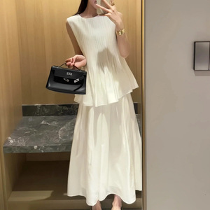 无袖压褶背心上衣+高腰A字半身裙2025夏季新款法式气质时尚两件套