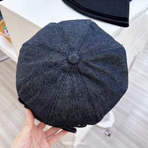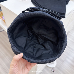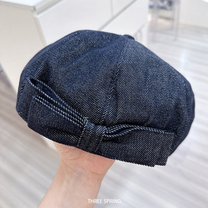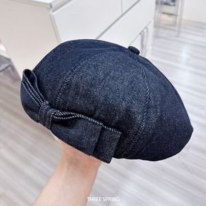 批发韩国2025年早秋新款ins蝴蝶结牛仔贝雷帽女文艺可调节画家帽